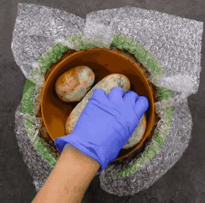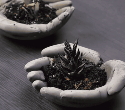 一个外表镶嵌有圆孔形状的花盆就做好了